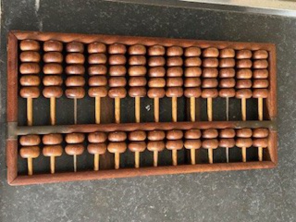 • Àbaco (suanpan) em madeira  chines, antigo instrumento de cálculo, adição, substração, multiplicação e divisão, foi inventado a milhares de 2000 na china,