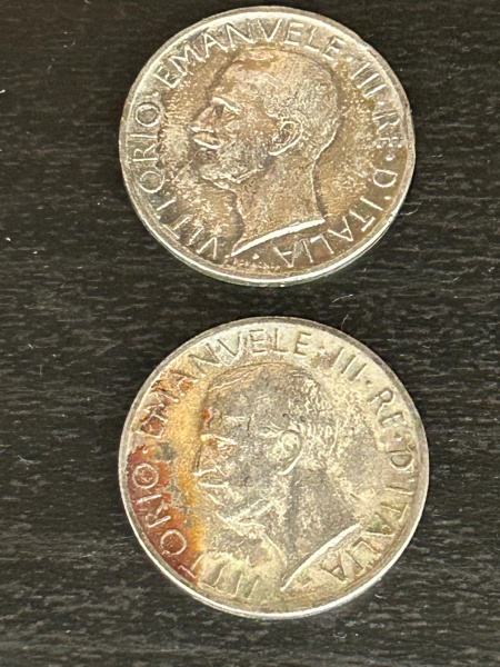 • Duas moedas de prata italianas de 5 liras de 1926 e 1927  de 5 gramas cada total 10,gramas . Muito bom estado de conservação .