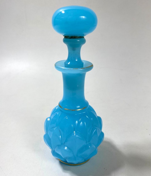 • "OPALINA BACCARAT-FRANÇA SÉC XIX - RARO PERFUMEIRO EM OPALINA BACCARAT AZUL DECORAÇÃO ABACAXI . MEDIDAS: 15,5 CM"