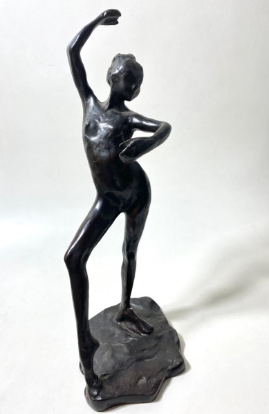 • "EDGAR DEGAS (18341917), APÓS  DANÇARINA (MODELO IMPRESSIONISTA)  BRONZE, FUNDIÇÃO CIRE PERDUE, SÉC. XX - PÓSTUMA - COM IMPORTANTE SELOBRONZE DE ALTA QUALIDADE COM PÁTINA ESCURA, REPRESENTANDO BAILARINA EM POSIÇÃO ELEGANTE, UM BRAÇO ERGUIDO E OUTRO APOIADO NA CINTURA; SUPERFÍCIE MODELADA E BASE ORGÂNICA TIPICAMENTE DEGASIANA. ASSINATURA INCISA NA BASE (DEGAS) E CARIMBO CIRCULAR DA FUNDIÇÃO CIRE PERDUE NUMERAÇÃO/INSCRIÇÃO INCISA CONFORME OS PADRÕES DAS EDIÇÕES PÓSTUMAS. OBRA BASEADA NAS CERAS ORIGINAIS DO ARTISTA, CUJOS BRONZES FORAM EDITADOS APÓS 1919 PELA FUNDIÇÃO A.A. HÉBRARD E POSTERIORMENTE PELA C. VALSUANI.METROPOLITAN MUSEUM OF ART, MODELOS DE BAILARINAS DE DEGAS; EDIÇÕES HÉBRARD/VALSUANI DOCUMENTADAS EM CATÁLOGOS E VENDAS INTERNACIONAIS. MEDIDAS: 47 CM DE ALTURA"